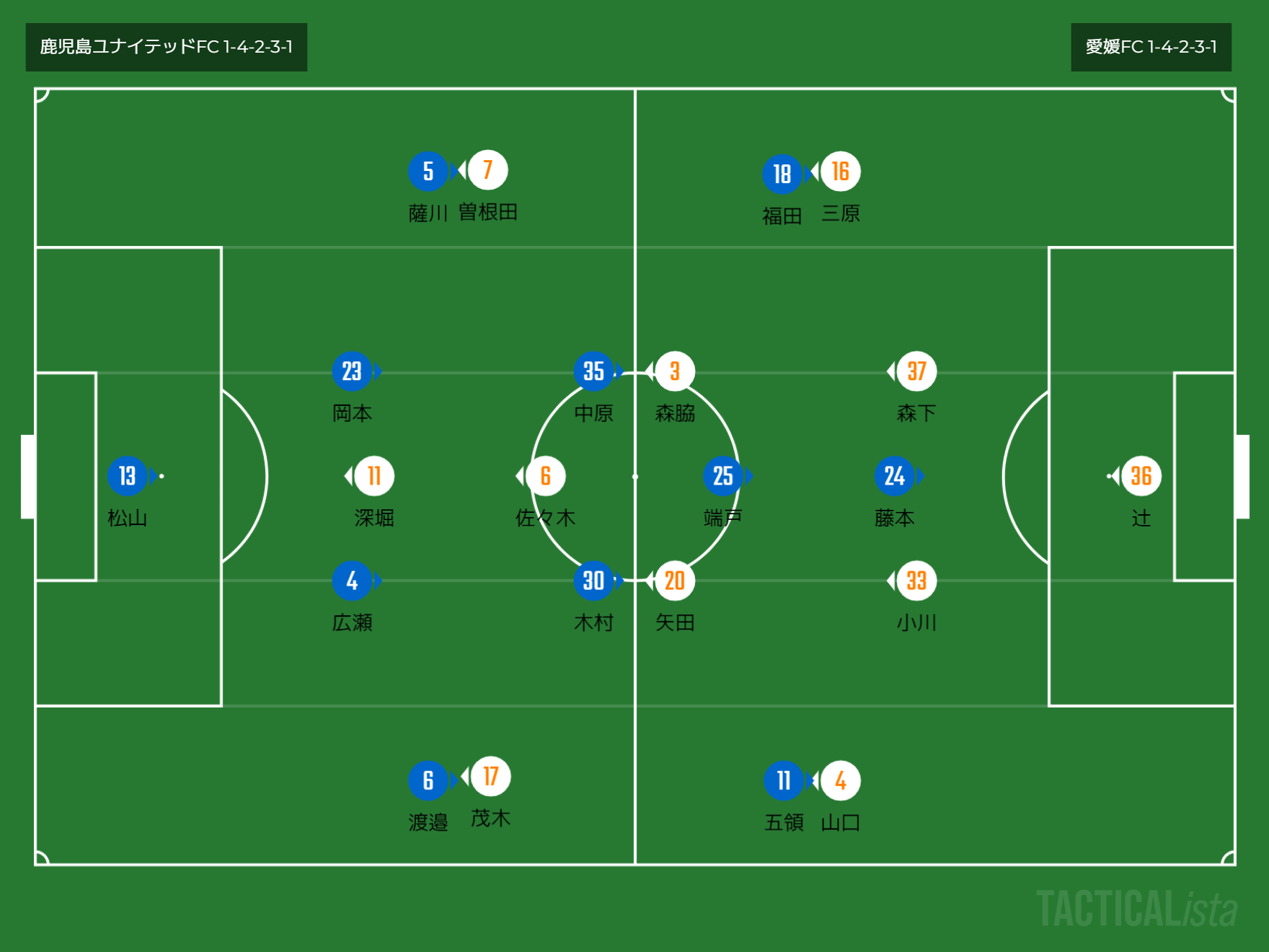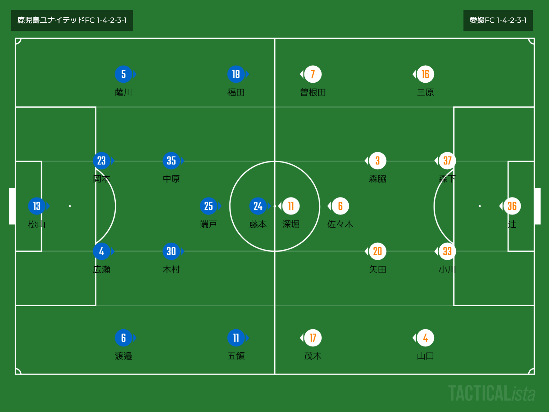 フォーメーション 1-4-2-3-1(鹿児島)1-4-2-3-1(愛媛)