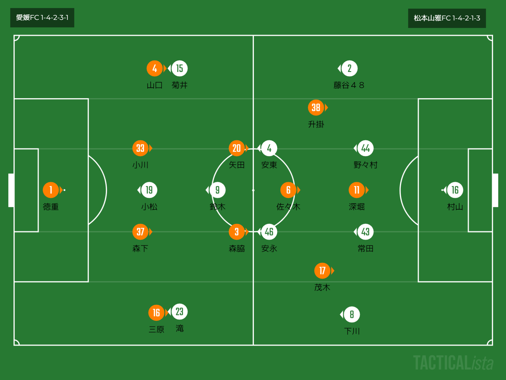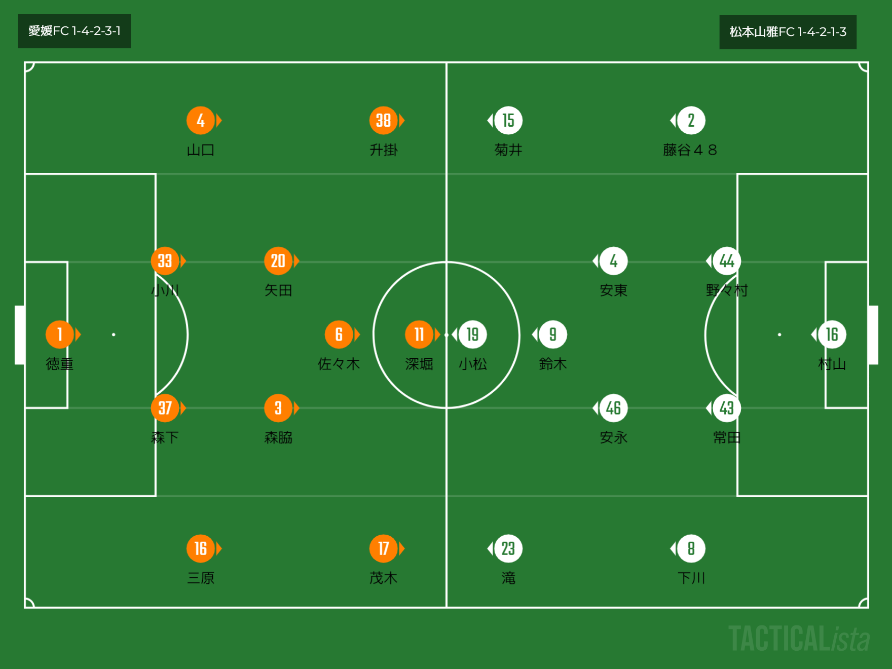 フォーメーション 1-4-2-3-1(愛媛)1-4-2-1-3(松本)