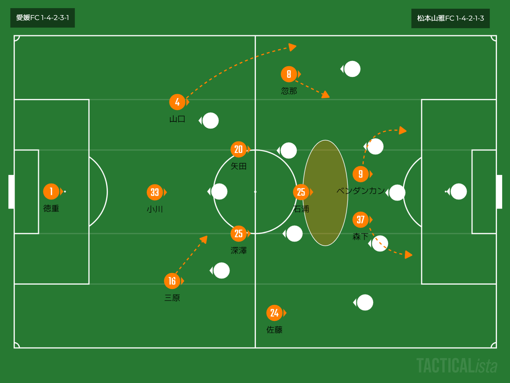 ポイントは愛媛は奪った後の攻撃をフィニッシュにつなげることができるか、松本は失った後のボールの回収をどれだけ速くできるかがポイントですね。