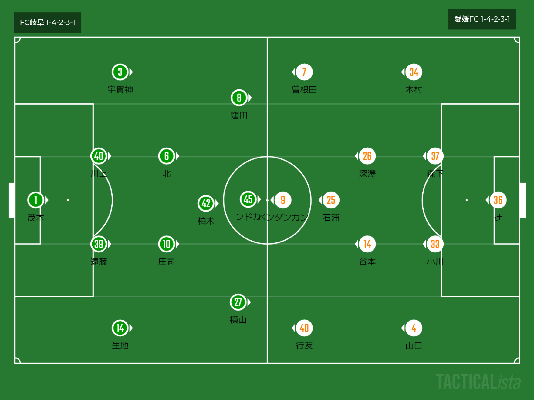 フォーメーション 1-4-1-2-3(FC岐阜)1-4-2-3-1(愛媛)
