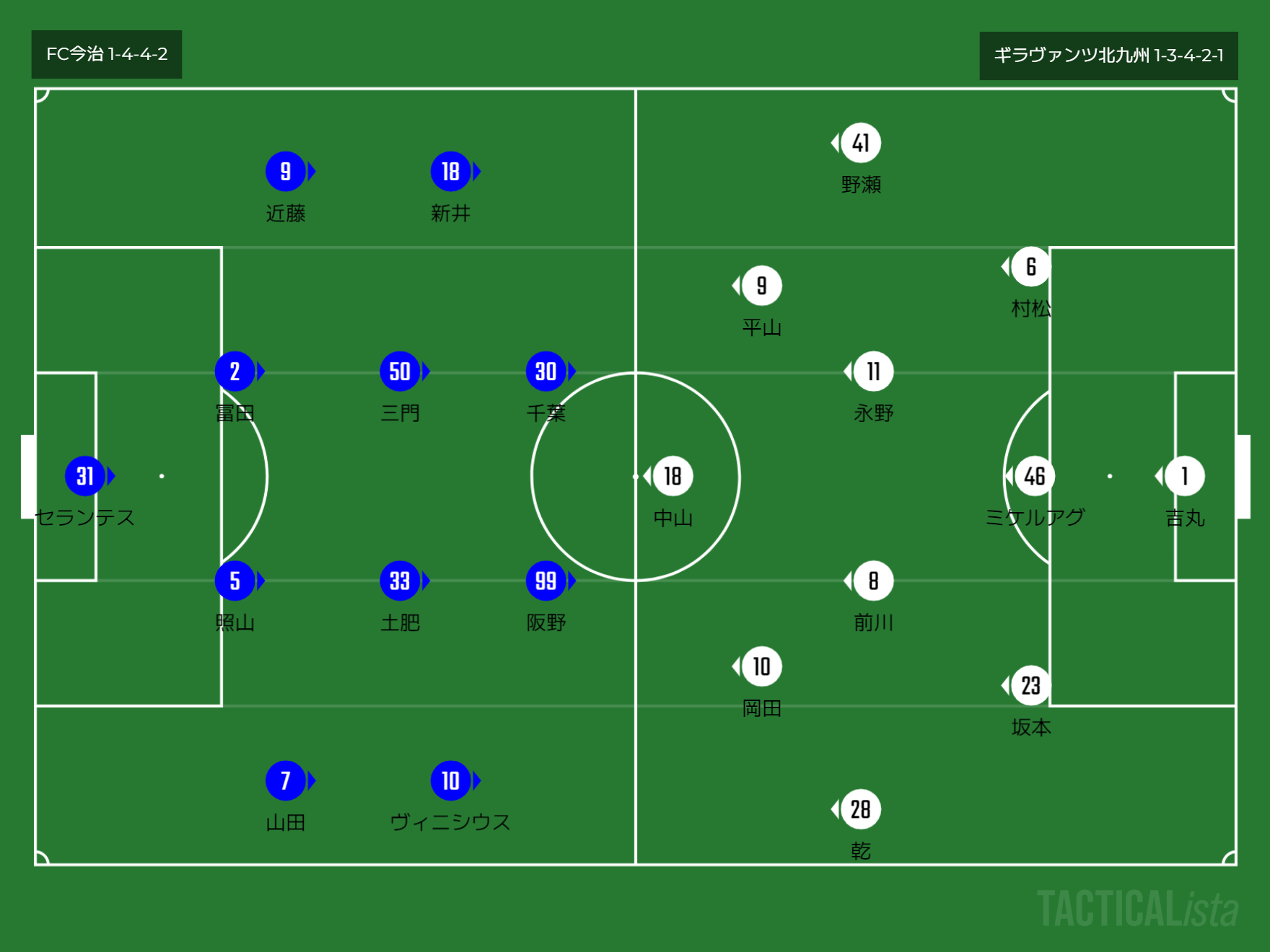 フォーメーション 1-4-4-2(今治)1-3-4-2-1(北九州)