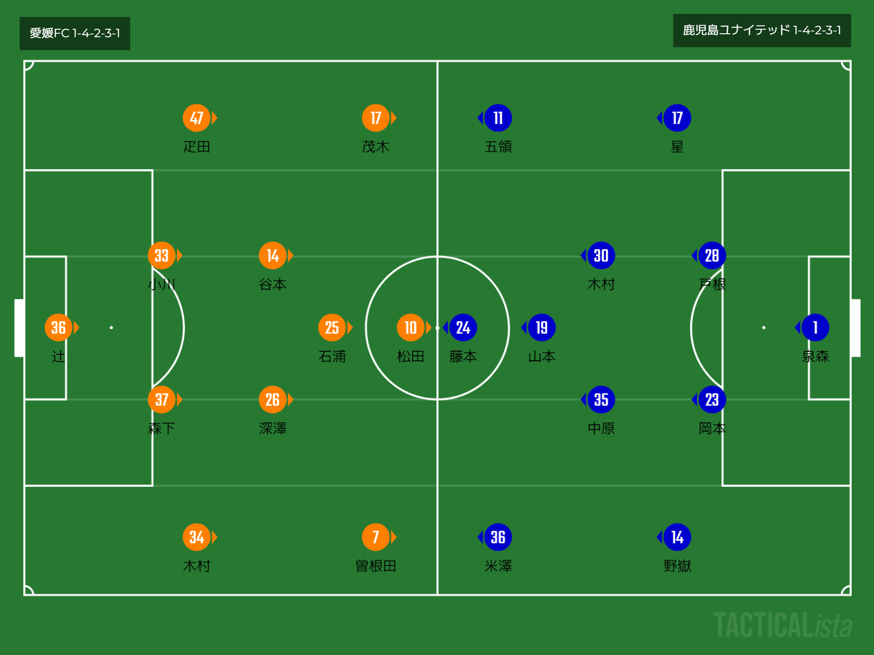 フォーメーション 1-4-2-3-1(愛媛)1-4-2-3-1(鹿児島)