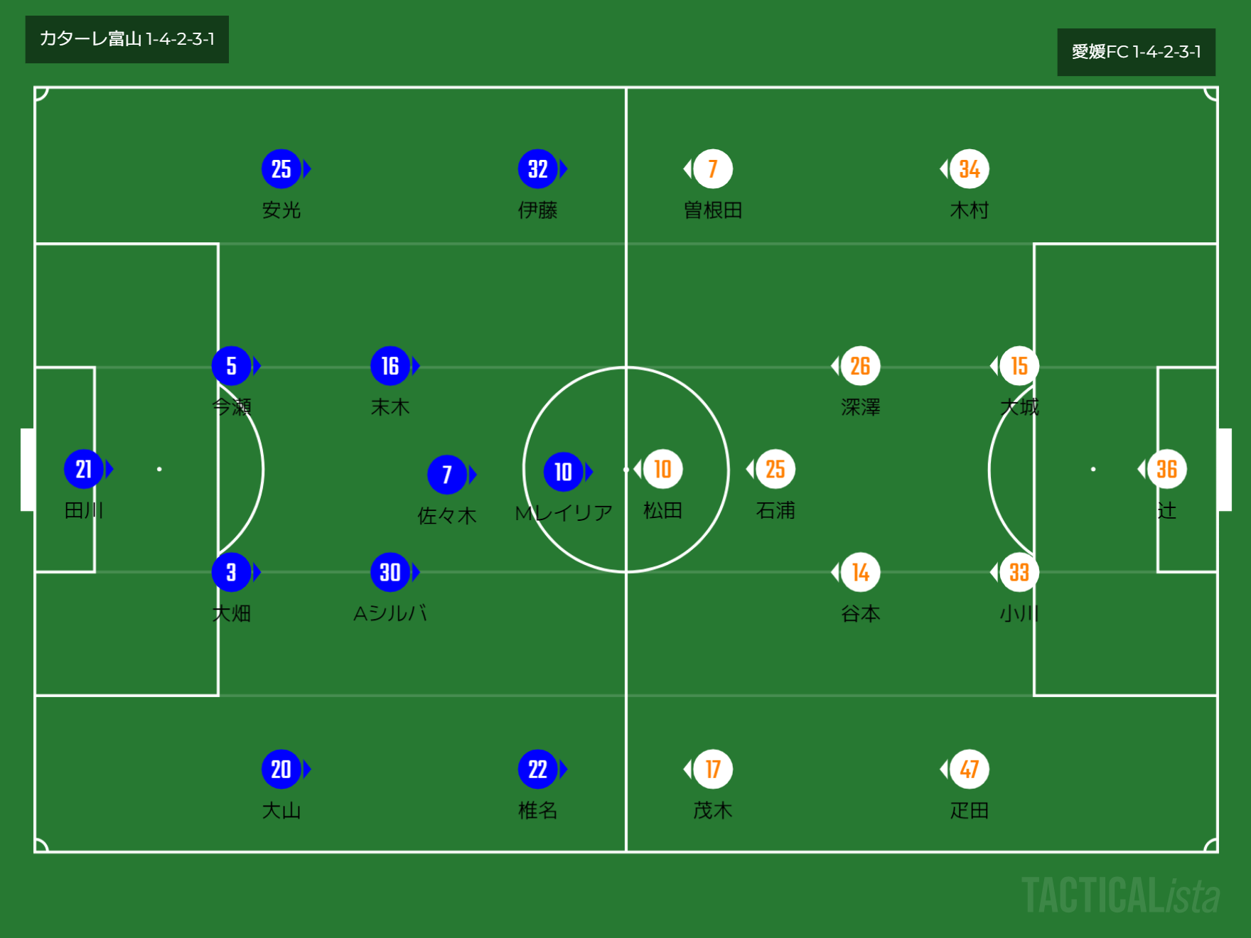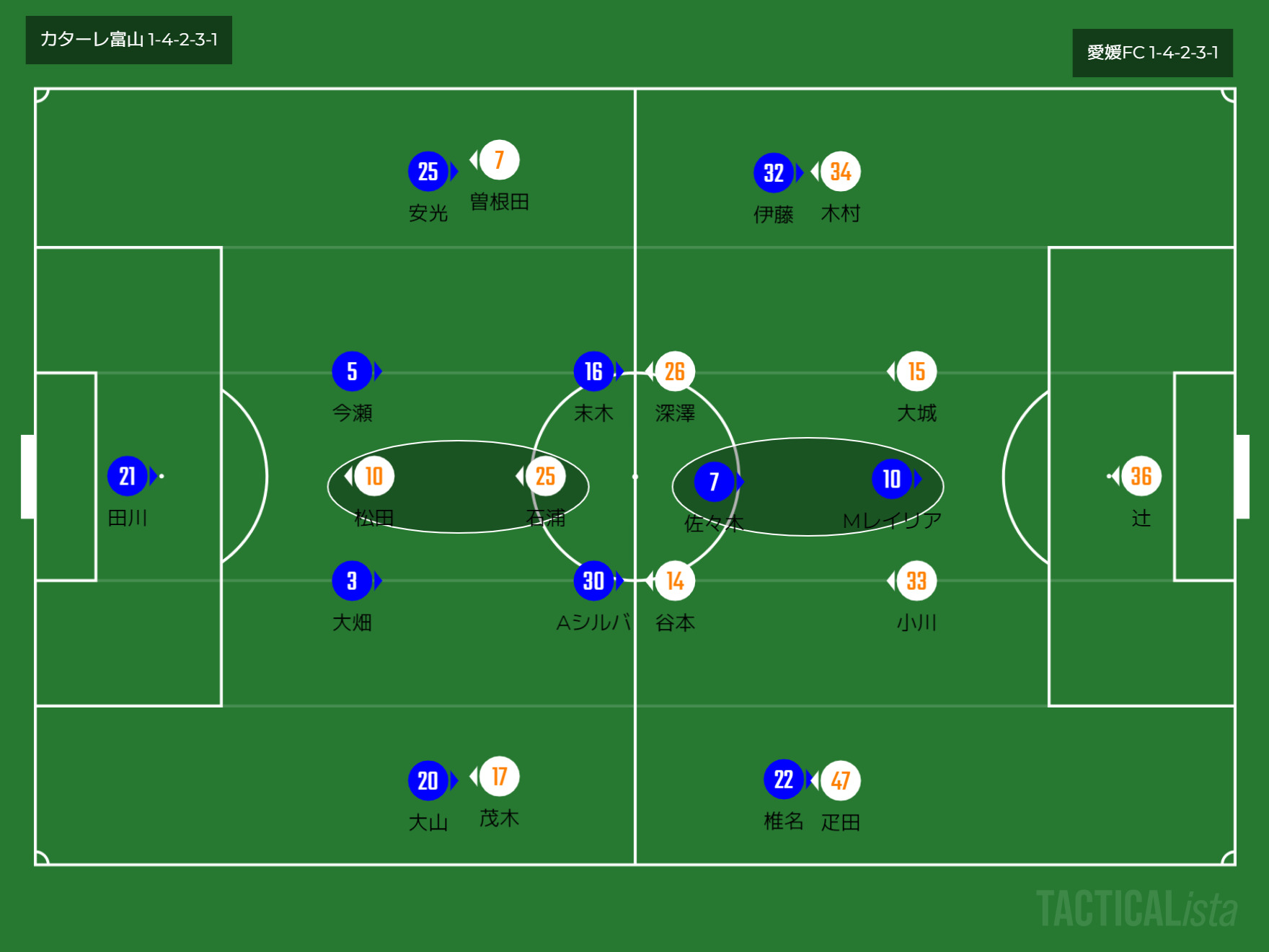 フォーメーション 1-4-2-3-1(富山)1-4-2-3-1(愛媛)