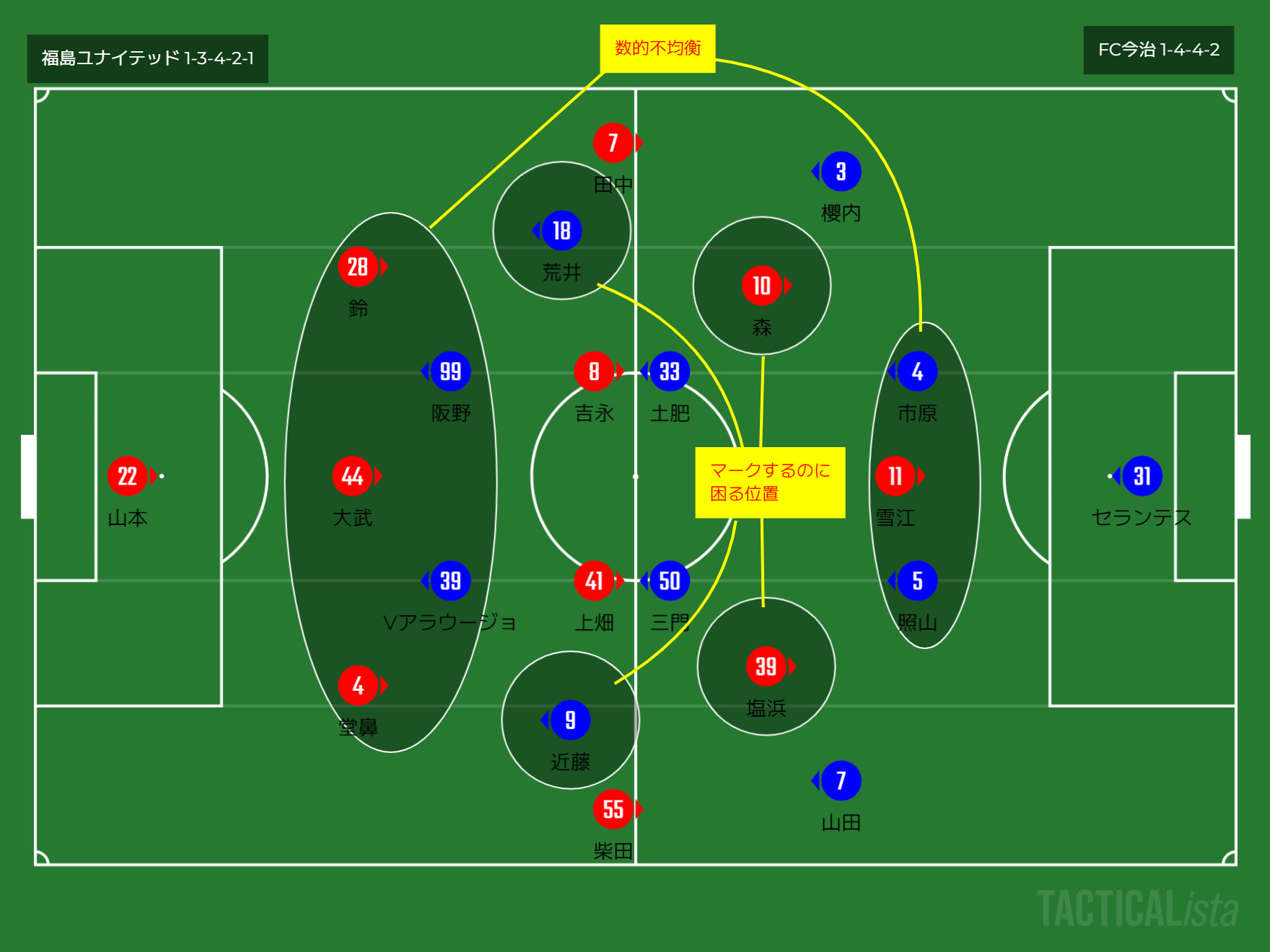 ・4バックの今治に対して福島は5レーンをどう使うか