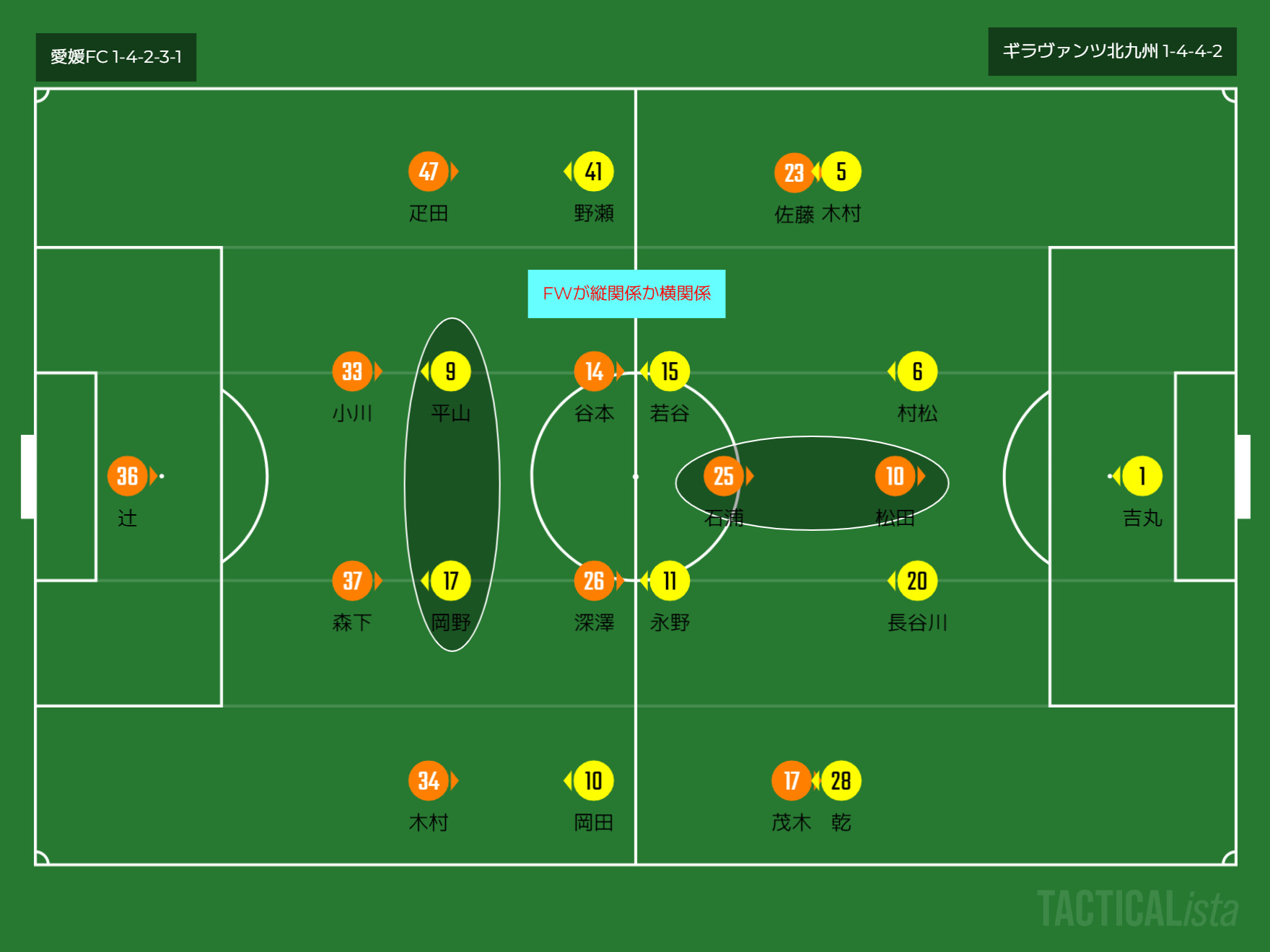 フォーメーション 1-4-2-3-1(愛媛)1-4-4-2(北九州)