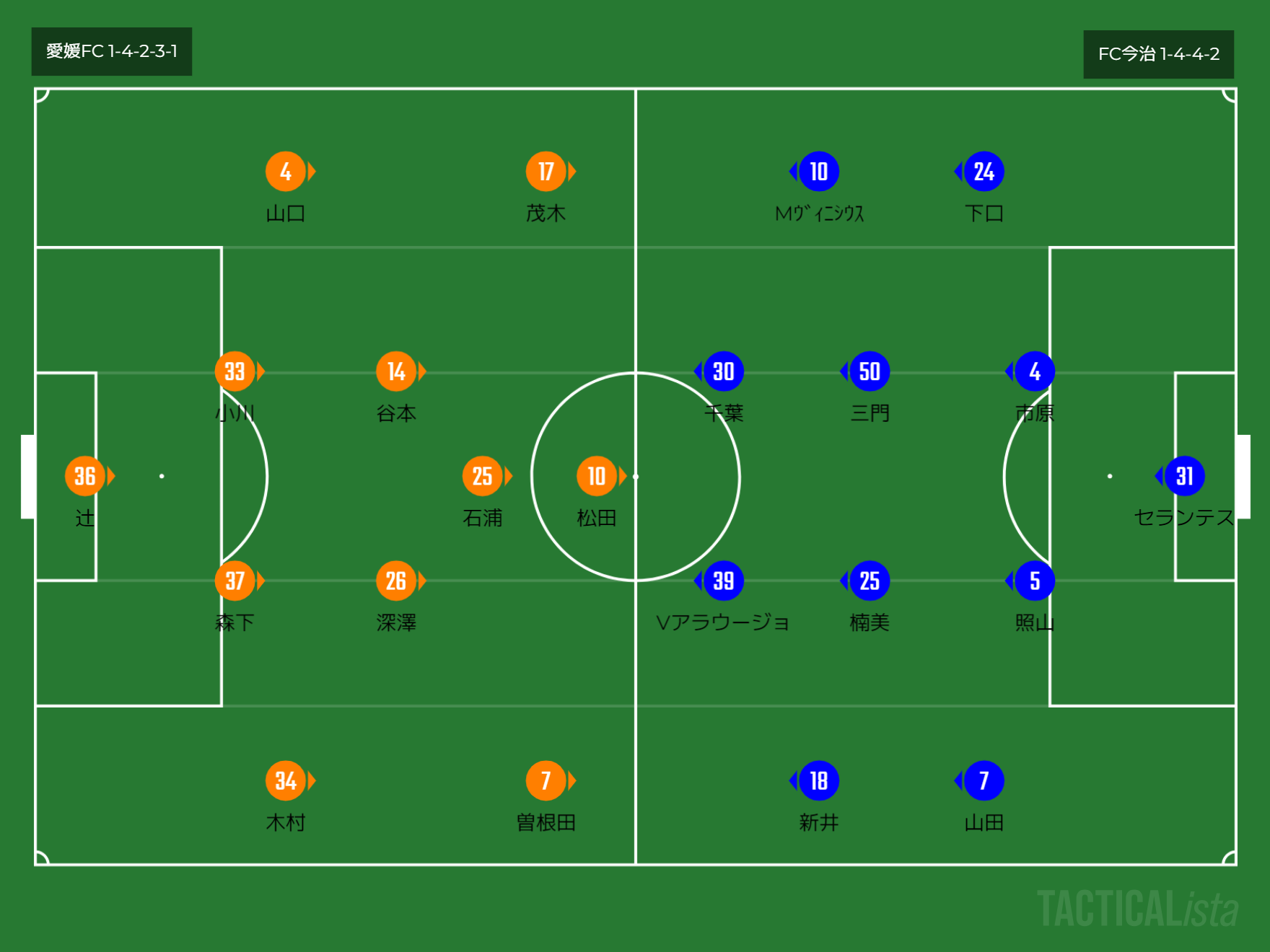 フォーメーション 1-4-2-3-1(愛媛)1-4-4-2(今治)