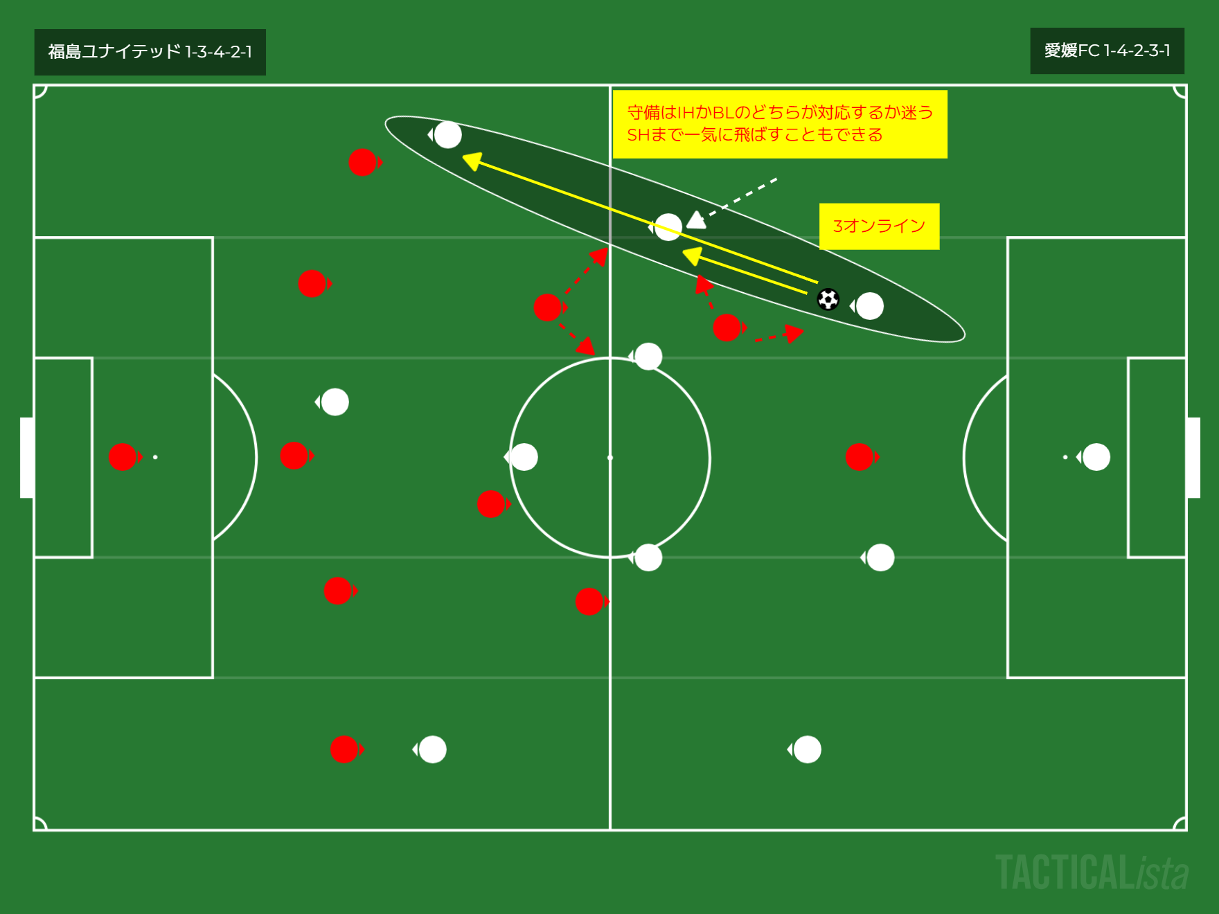 福島は1-3-4-2-1で、愛媛は1-4-2-3-1ということで、噛み合わない箇所が複数ありますね。