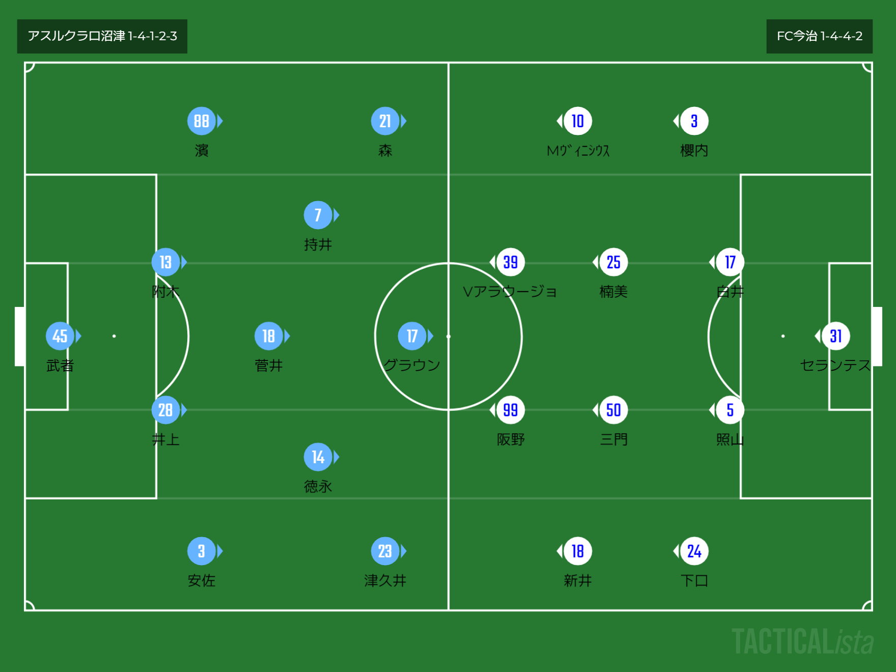フォーメーション 1-4-1-2-3(沼津)1-4-4-2(今治)