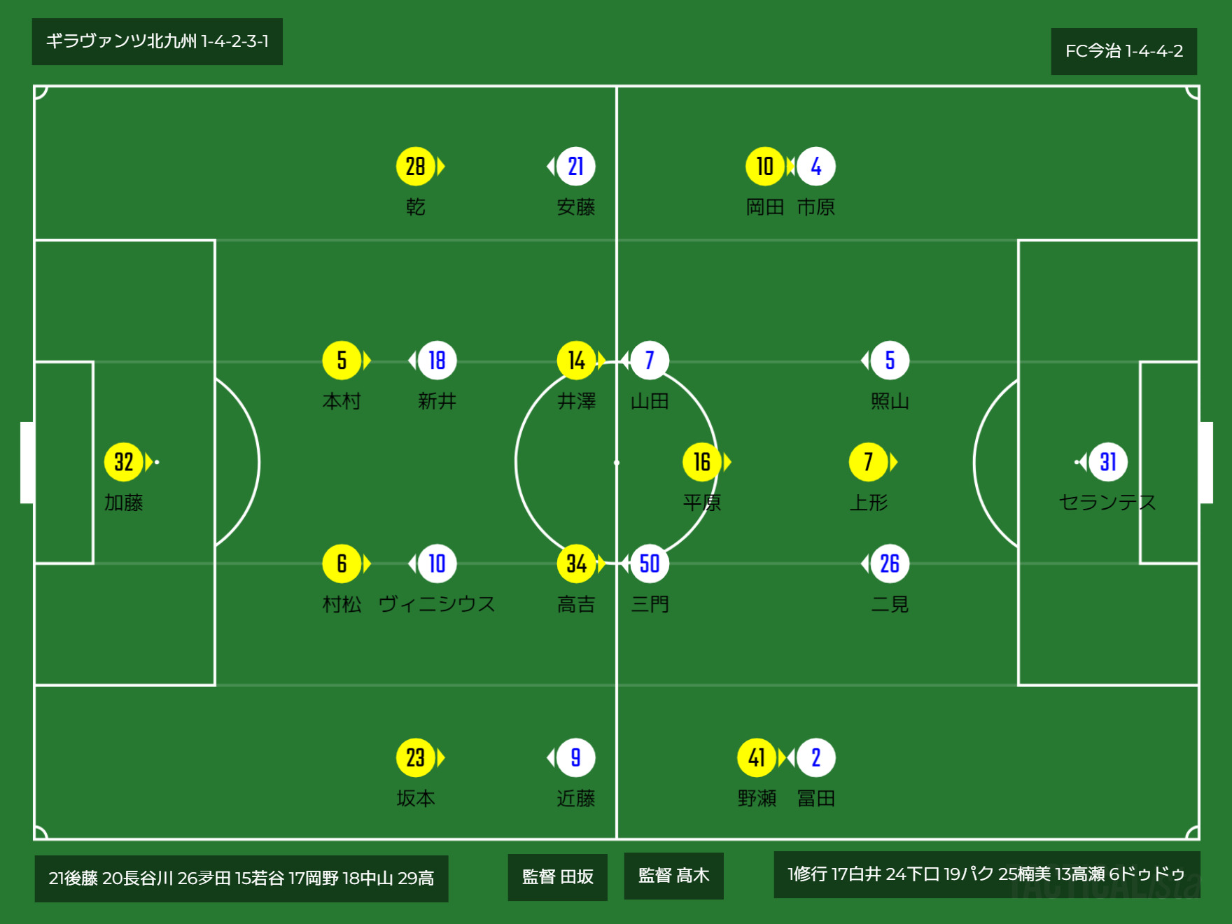 フォーメーション 1-4-2-3-1(北九州)1-4-4-2(今治)