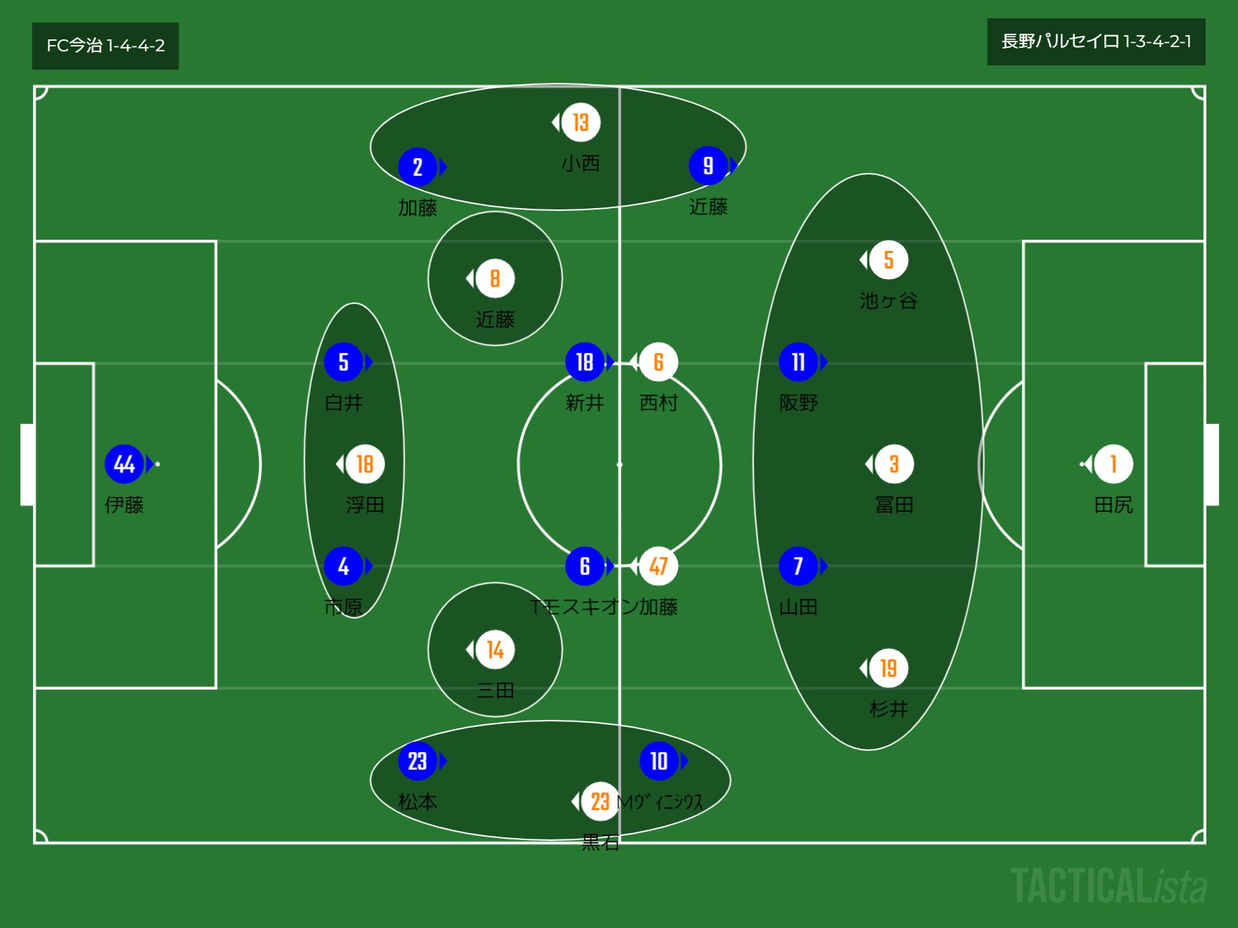 フォーメーション 1-4-4-2(今治)1-3-4-2-1(長野)