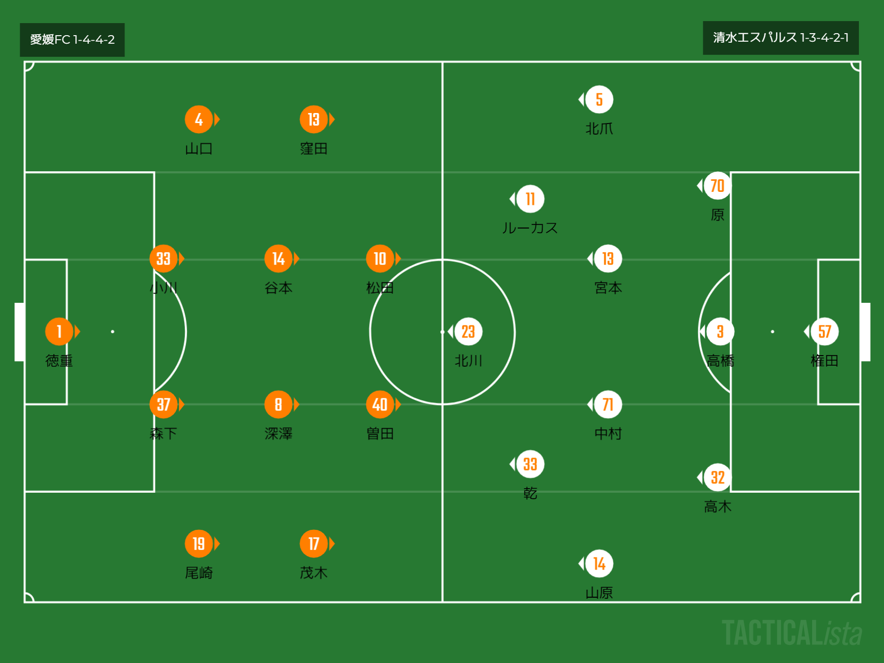 フォーメーション 1-4-4-2(愛媛)1-3-4-2-1(清水)