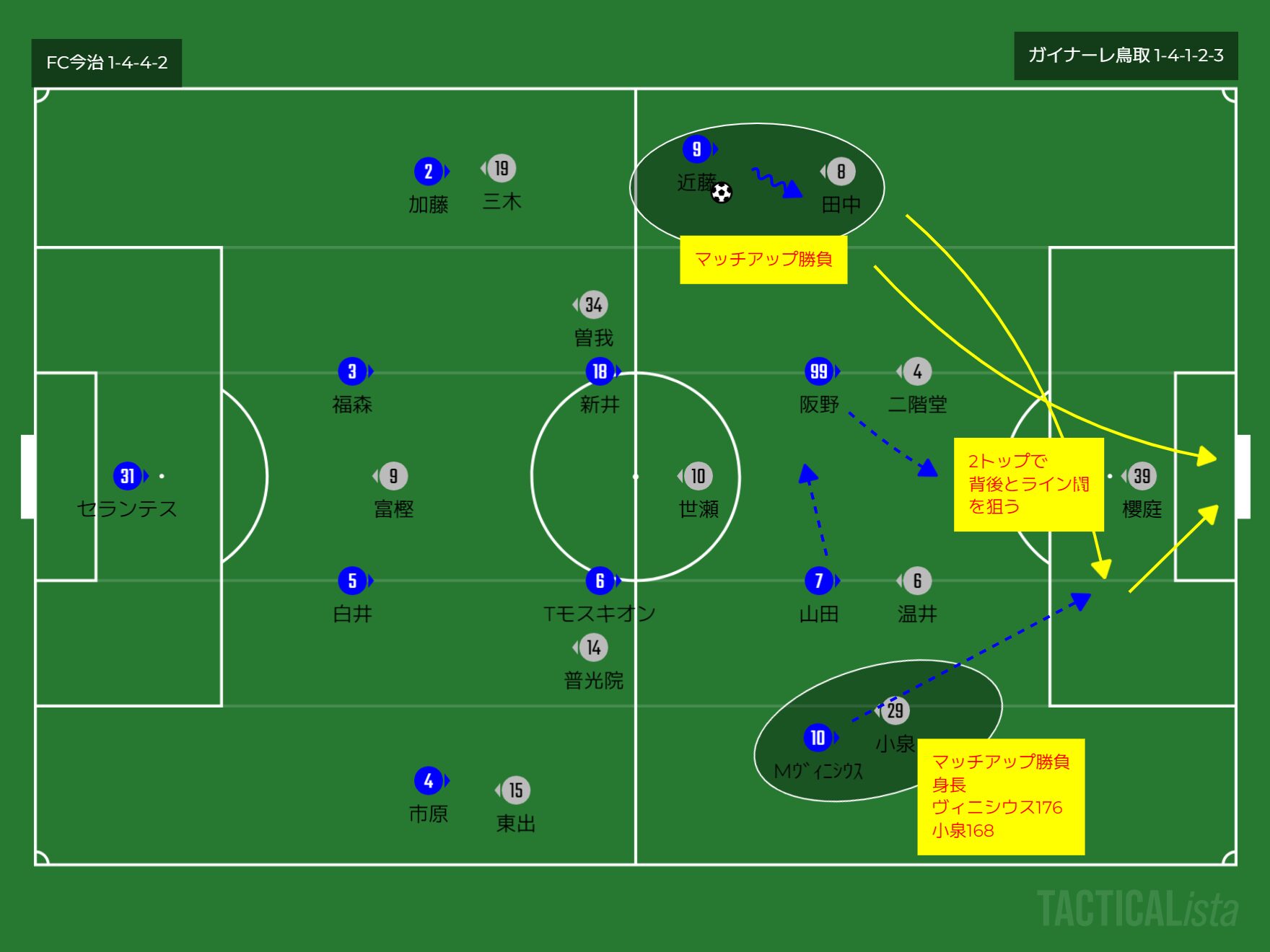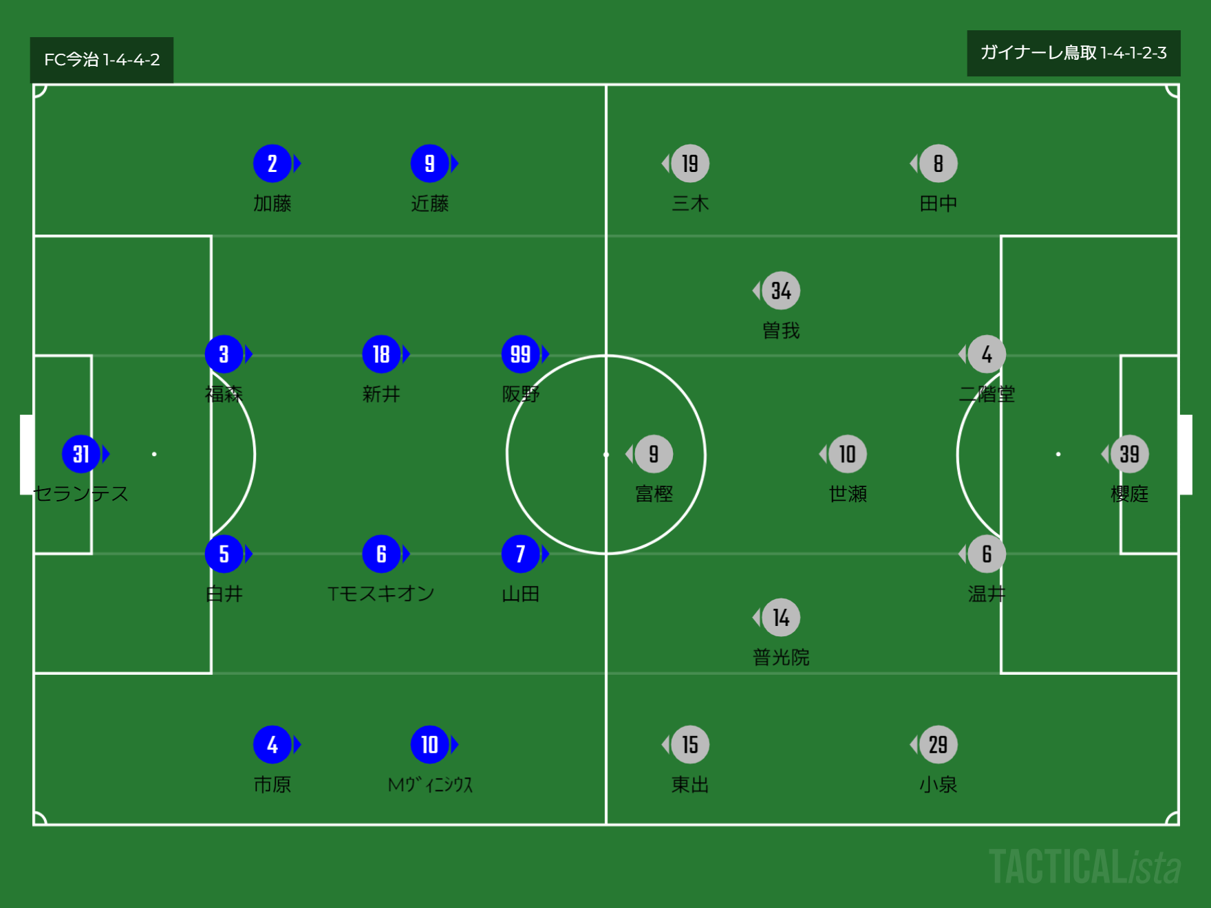 フォーメーション 1-4-4-2(今治)1-4-1-2-3(鳥取)