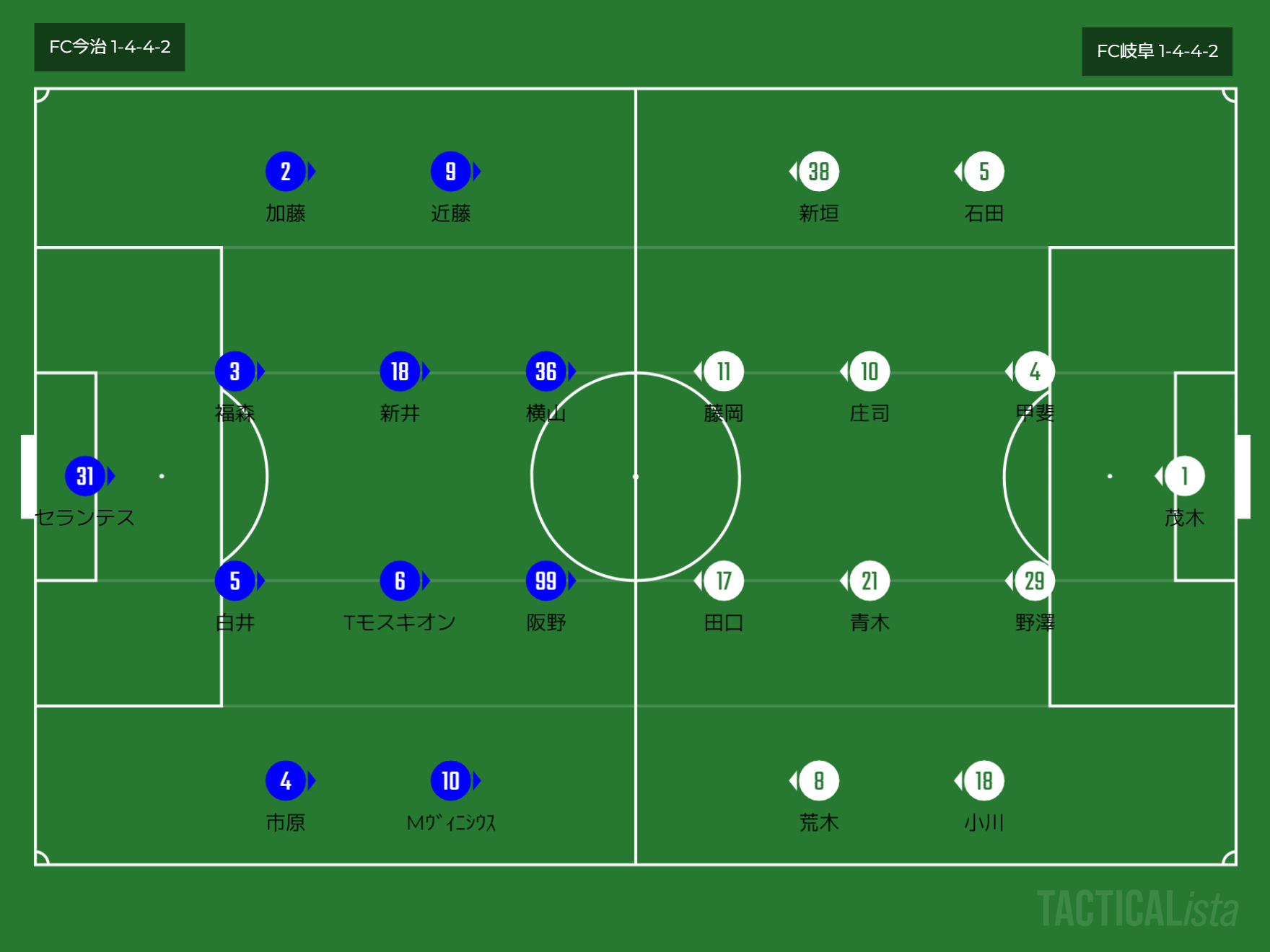 フォーメーション 1-4-4-2(今治)1-4-4-2(岐阜)