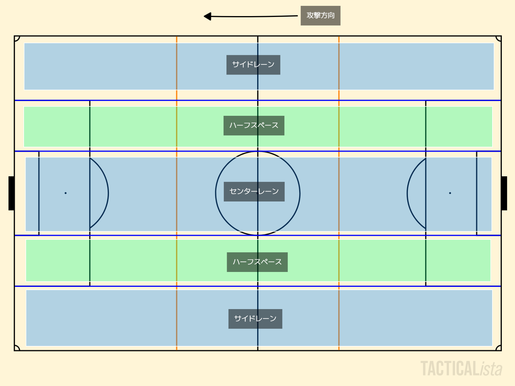 ハーフスペースはセンターレーンとサイドレーンの間のレーン。(11m✕2レーン)