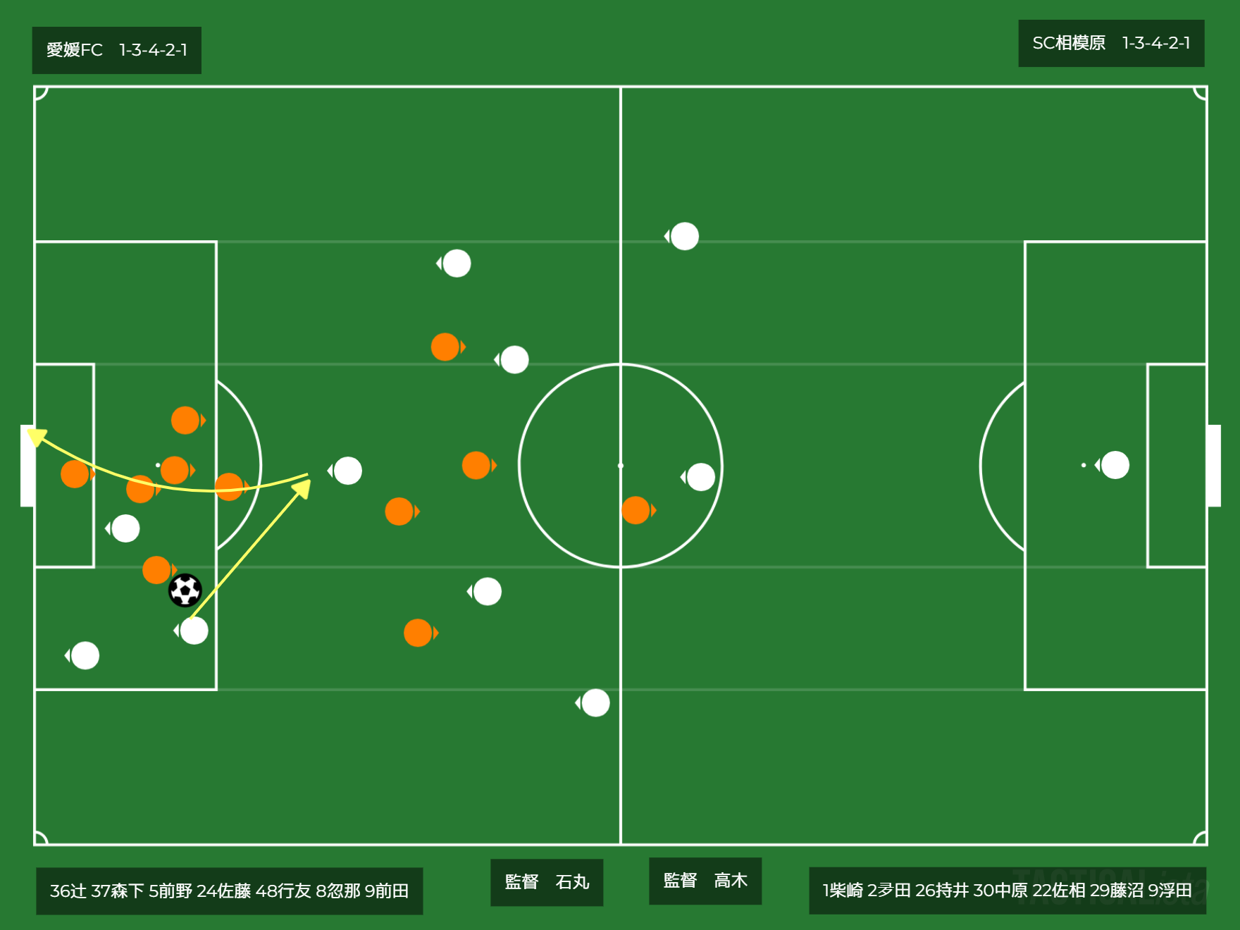 フォーメーション 1-3-4-2-1(愛媛)1-3-4-2-1(相模原)